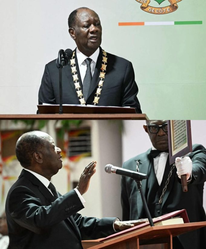 Sa sagesse, son humanisme et sa vision éclairée du développement continuent de nous inspirer et de guider la Côte d’Ivoire. Nous ne cesserons jamais de lui manifester notre reconnaissance pour avoir inculqué à chaque Ivoirien et Ivoirienne la culture de paix, la promotion de l’hospitalité et du vivre ensemble comme socle de notre identité nationale. Ce sont ces valeurs profondément ancrées en chacun et chacune d’entre nous qui ont permis de surmonter les défis liés à cette élection dans la paix et la tranquillité », a souligné ce lundi 8 décembre 2025 le Président Alassane Ouattara lors de la cérémonie de prestation de serment au Palais présidentiel à Abidjan-Plateau. Réélu le 25 octobre 2025 avec 89,77% des suffrages, il a prêté serment pour un nouveau mandat de cinq ans. La cérémonie a rassemblé une large délégation de chefs d’État africains : Denis Sassou Nguesso (Congo), João Lourenço (Angola), Mohamed Ould Cheikh El Ghazouani (Mauritanie), Bassirou Diomaye Faye (Sénégal), Adama Barrow (Gambie), Julius Maada Bio (Sierra Leone), Joseph Boakaï (Liberia), Azali Assoumani (Comores), Brice Clotaire Oligui Nguema (Gabon), entre autres. La présence du secrétaire d’État américain Jacob Helberg a également souligné l’importance internationale de l’événement. L’événement a surtout réuni le corps diplomatique, des présidents d’institutions et membres du gouvernement, avec une allocution de la présidente du Conseil constitutionnel. Le Président a reçu le Grand Collier de l’Ordre National, symbole de l’autorité et de la continuité de l’État. La cérémonie, empreinte de solennité, a été ponctuée par des hommages à l’unité nationale. Ce moment solennel marque l’ouverture d’une nouvelle ère axée sur la stabilité et le développement.