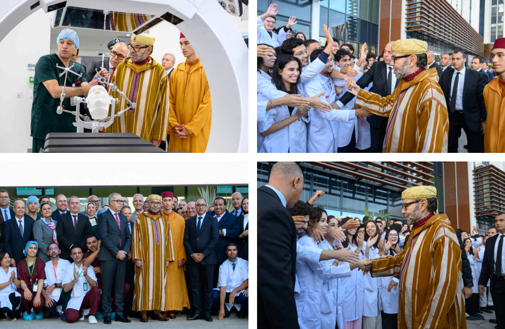 Le roi Mohammed VI, accompagné du prince héritier Moulay El Hassan, a inauguré ce lundi 3 novembre 2025 le Centre Hospitalier Universitaire (CHU) Mohammed VI d’Agadir. Cette inauguration fait suite à celle du Complexe Hospitalo-Universitaire International Mohammed VI à Rabat effectuée le même jour. Le CHU d’Agadir, d’un coût global supérieur à 2,9 milliards de dirhams, est un pôle hospitalo-universitaire moderne et de nouvelle génération destiné à devenir une référence dans la région du Souss-Massa. Le CHU se compose de deux pôles hospitaliers : un hôpital mère-enfant, avec des services de maternité, gynécologie, pédiatrie et unités de réanimation néonatale et pédiatrique, et un hôpital des spécialités, comprenant diverses disciplines médicales et chirurgicales, urgences modernes, unités de réanimation, service des grands brûlés et un laboratoire complet.